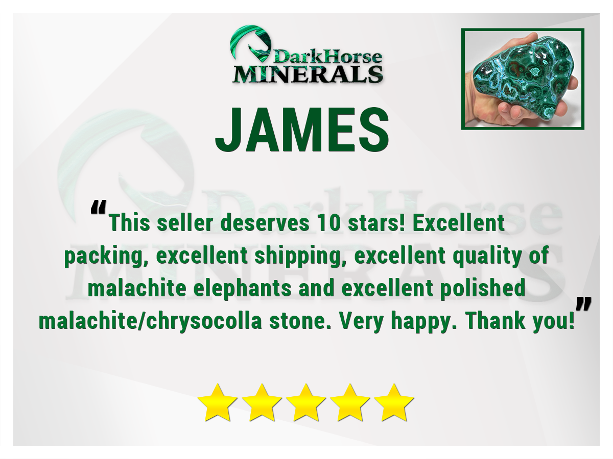 Malachite has been one of our key minerals that has helped catapult our brand over the years. We source our Malachite from as close to the mines as possible, working with mine owners directly, or once removed. Our inventory spans from malachite specimens, polished material, eggs, spheres, carvings, obelisks, jewelry boxes and more!