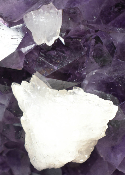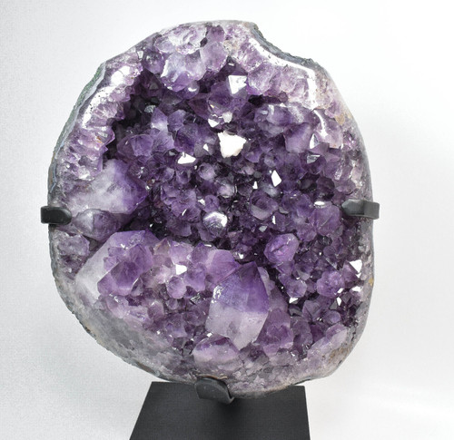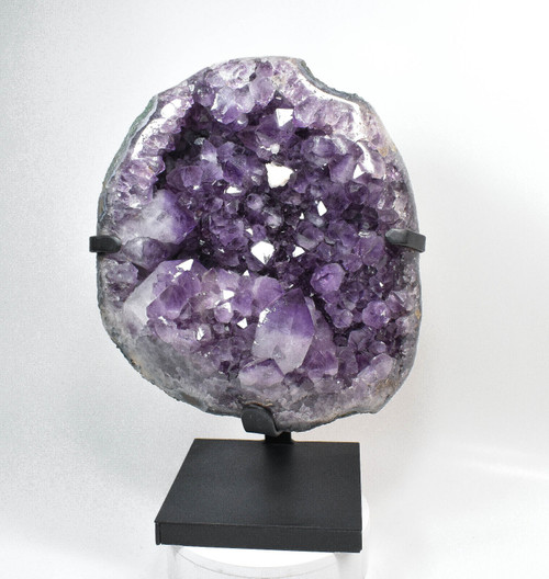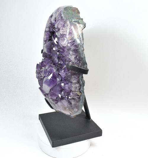 Beautiful Amethyst Cluster with Calcite on stand. Polished on the edges. The Amethyst will not come off of stand unless you pry open the stand.