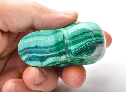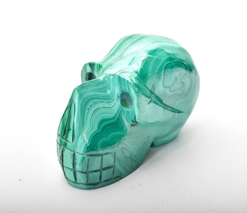 Hand Carved Polished Malachite Skull. The Carving is hand carved and polished by Congolese Artisans directly from the D.R. Congo. Unique one of a kind and much better in person. Displays well and is a beautiful addition to any collection.