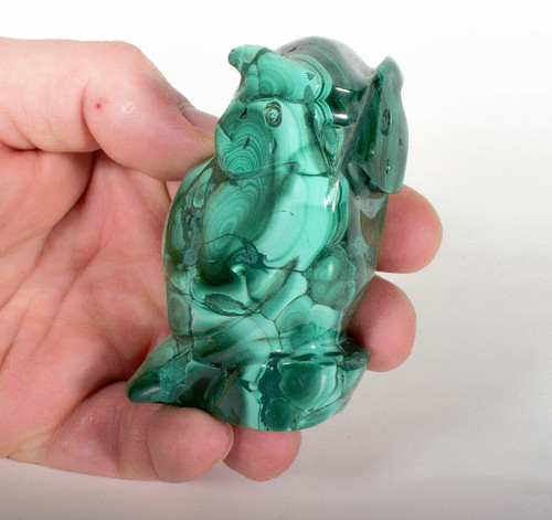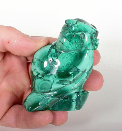 Hand Carved Polished Malachite Owl. The Carving is hand carved and polished by Congolese Artisans directly from the D.R. Congo. Unique one of a kind and much better in person. Displays well and is a beautiful addition to any collection.