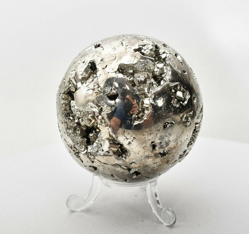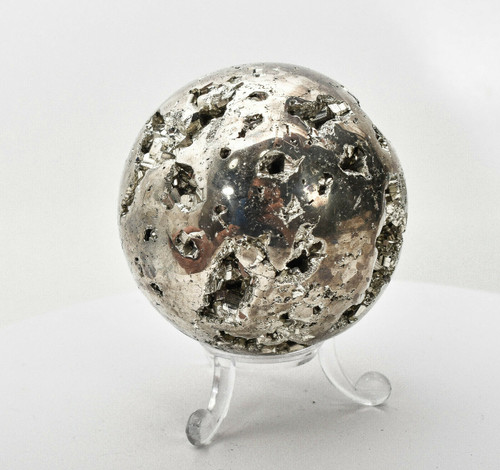 Golden Polished Pyrite Sphere with stand. Much better in person. Displays well and is a beautiful addition to any collection.