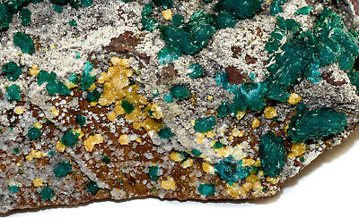 Beautiful sparkly druzy Dioptase with Mimetite. Much better in person.Displays well and is a beautiful addition to any collection.