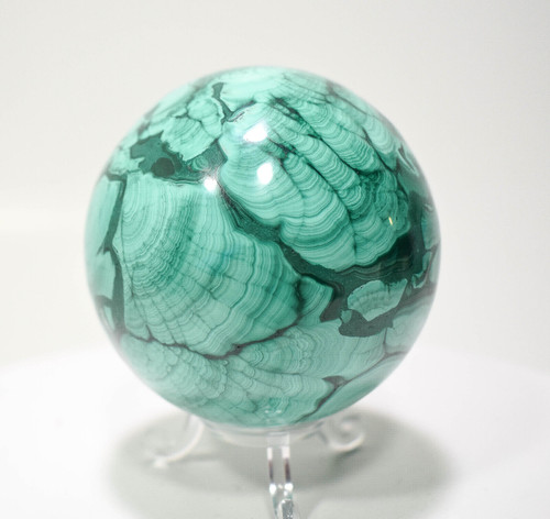 Polished Malachite Sphere with stand. Video is a little dark. Displays well and is a beautiful addition to any collection.
