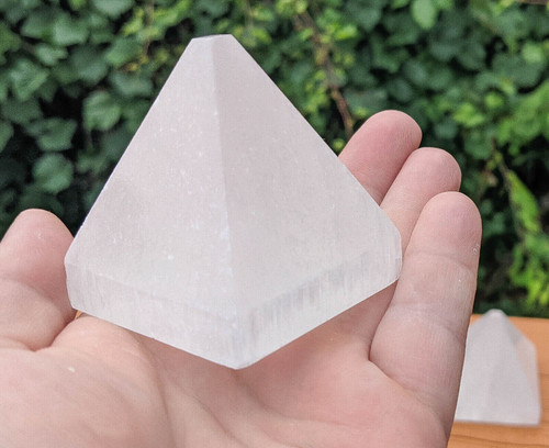 This listing is for One Polished Selenite Pyramid. The tips on the top are flat. Displays well and is a beautiful addition to any collection.