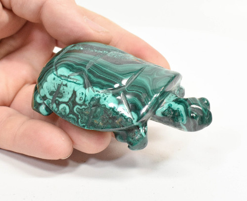 Polished Malachite Turtle Animal Carving. The Carving is hand made and polished by Congolese Artisans directly from the D.R. Congo. Unique one of a kind and much better in person. Displays well and is a beautiful addition to any collection.