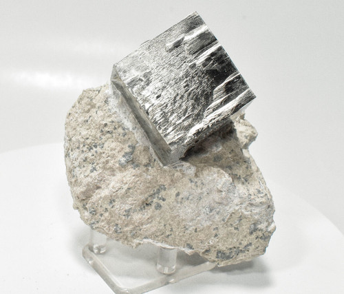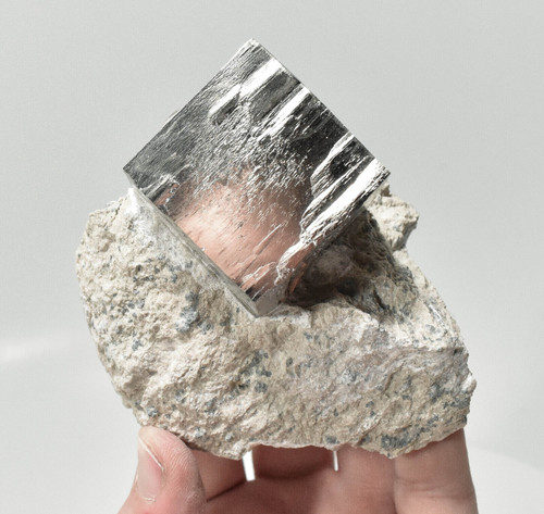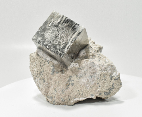 Golden Pyrite cube on matrix. Cube is 39mm / 1.53" on edge. Please note the matrix does not like water and may crumble if wet. These specimens are common to be repaired after extraction due to cubes falling off during preparations.Displays well and is a beautiful addition to any collection.
