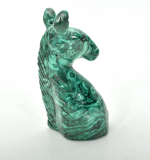 Hand Carved Polished Malachite Horse bust. The Carving is hand carved and polished by Congolese Artisans directly from the D.R. Congo. Unique one of a kind and much better in person. Displays well and is a beautiful addition to any collection.