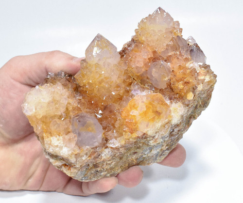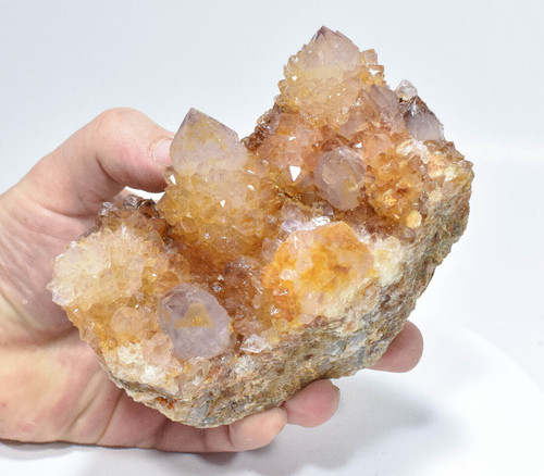 Beautiful Amethyst Sunshine Spirit Cactus Quartz. A few nicked crystals but overall a nice piece. Much better in person. Displays well and is a beautiful addition to any collection.