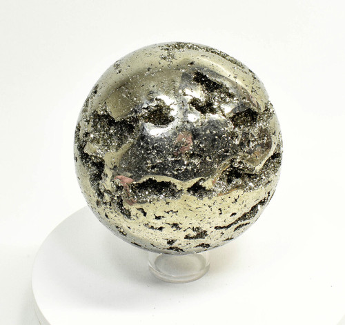 Beautiful Golden Polished Pyrite Crystal Sphere with stand. Camera does not do this specimen any justice. Much better in person. Displays well and is a beautiful addition to any collection.