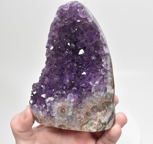 Beautiful Polished Amethyst cut base crystal Quartz cluster. Polished on the sides of the face. Much better in person. Displays well and is a beautiful addition to any collection.