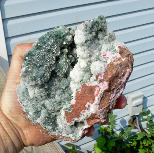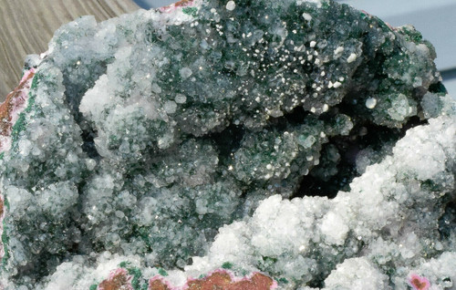 Quartz on Malachite with Cobalto Calcite. The back is filled with very clear doubly terminated Quartz clusters, best viewed with 60x Magnification. Displays well and is a beautiful addition to any collection.