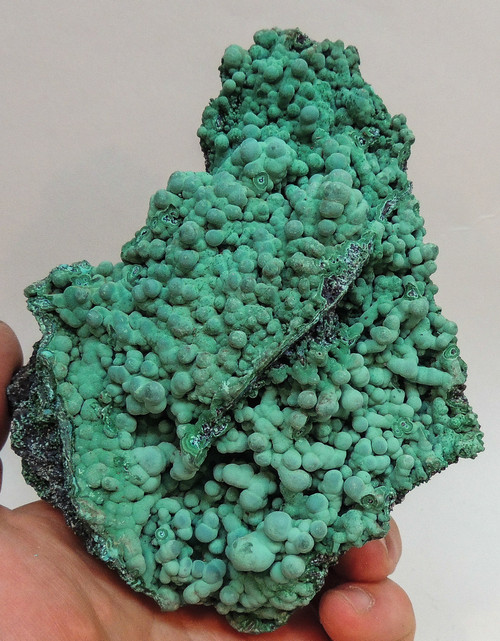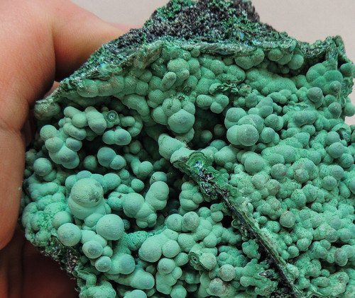 Here is an exceptional specimen of Botryoidal Chrysocolla and Malachite. A few Lustrous micro gemmy green Malachite crystals grace this specimen sporadically.