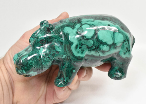 Polished Malachite Hippo Animal Carving. The Carving is hand made and polished by Congolese Artisans directly from the D.R. Congo. Unique one of a kind and much better in person. Displays well and is a beautiful addition to any collection.