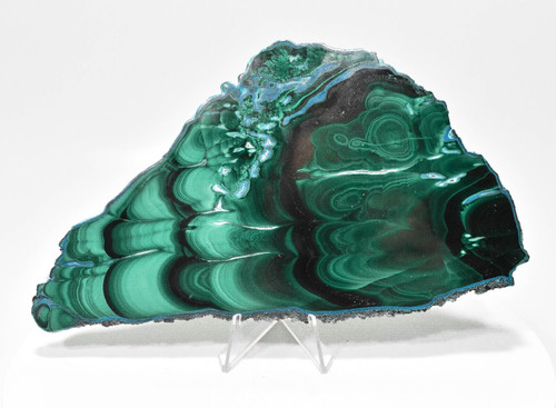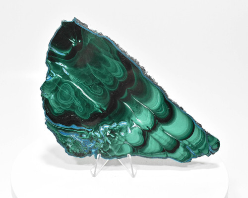 Polished Malachite, Chrysocolla and Cornetite slice with stand.