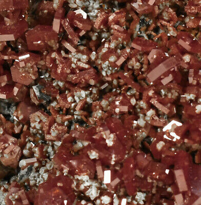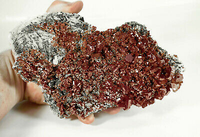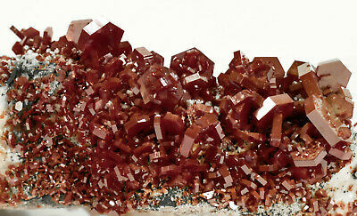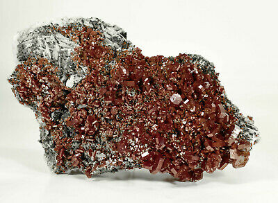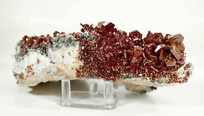 Outstanding Calcite on Red Vanadinite Crystals on Barite. A few of the smaller crystals are chipped The main larger Crystals are all intact, this piece is almost Pristine. Much better in person. Displays well and is a beautiful addition to any collection.